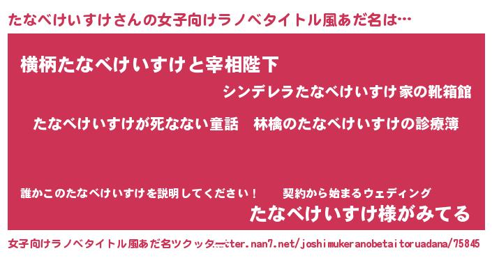 | 意味不明あだ名 | 『住所不定無職たなべけいすけ(74歳)』 |