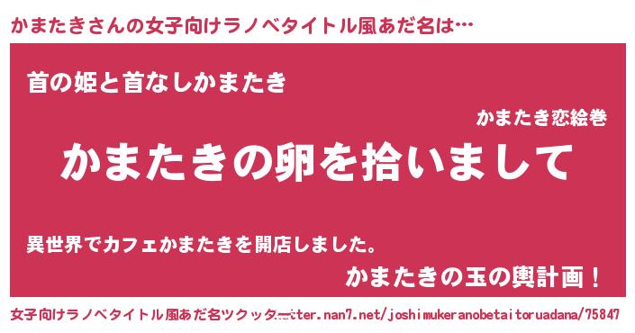 | 胡散臭い通販商品みたいなあだ名 | 『伝統あるネックレス…その名も「かまたき」』 |