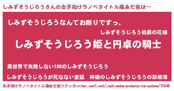| 男性向けラノベタイトル風あだ名 | 『しみずそうじろうの憂鬱』 |