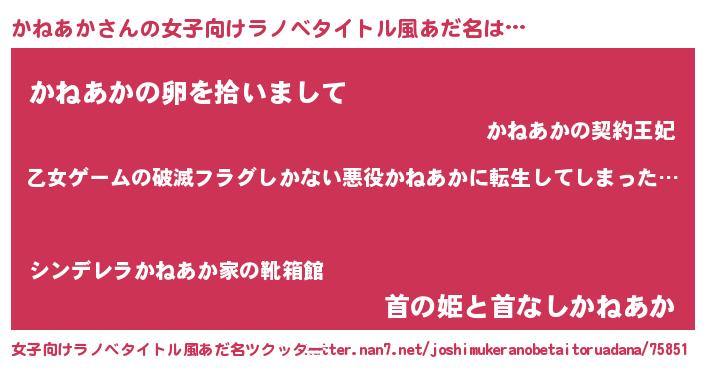 | 意味不明あだ名 | 『住所不定無職かねあか(71歳)』 |