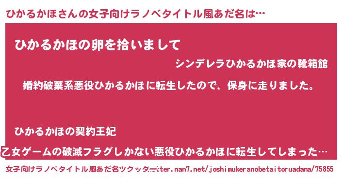 | 男性向けラノベタイトル風あだ名 | 『転生したらひかるかほだった件』 |