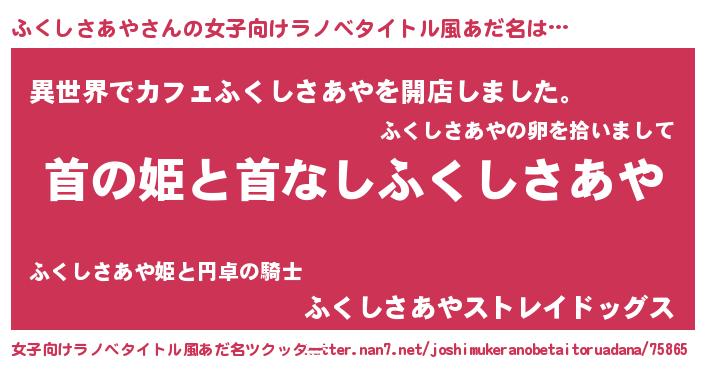 | ヒーロー風カッコイイあだ名 | 『ネオフクシサアヤ』『天弓騎士フク』 |