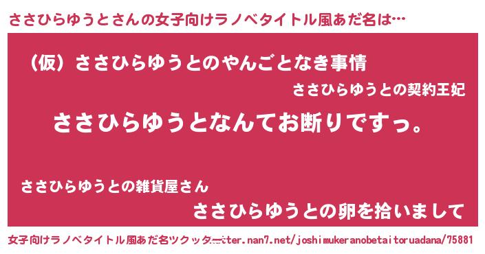 | 意味不明あだ名 | 『自称ささひらゆうと』 |