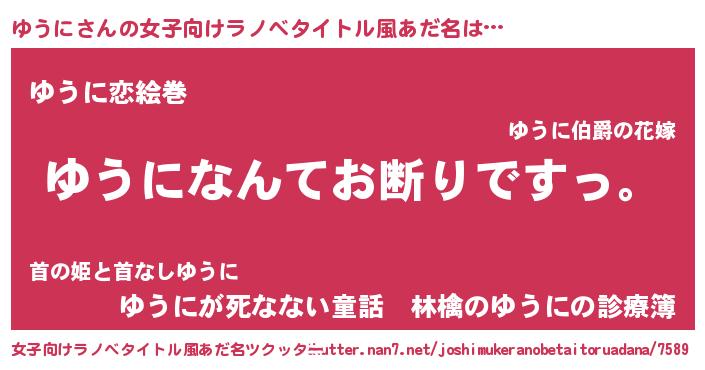 | 男性向けラノベタイトル風あだ名 | 『魔法科高校のゆうに』 |
