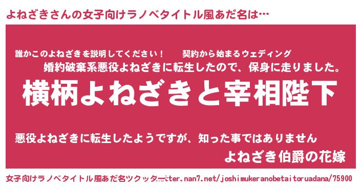 | 男性向けラノベタイトル風あだ名 | 『よねざきに滅ぼされるだけの簡単なお仕事です』 |