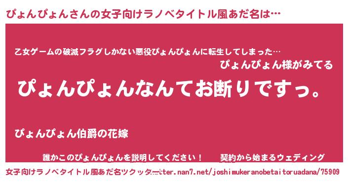 | 男性向けラノベタイトル風あだ名 | 『魔法科高校のぴょんぴょん』 |