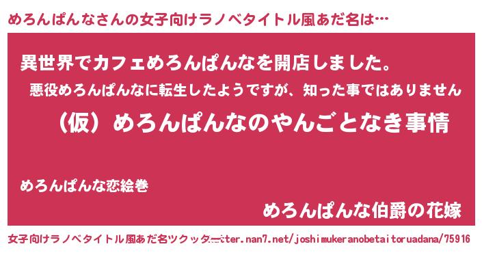 | 男性向けラノベタイトル風あだ名 | 『めろんぱんなの憂鬱』 |