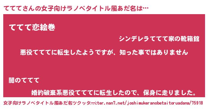 | 男性向けラノベタイトル風あだ名 | 『この素晴らしい世界にてててを!』 |