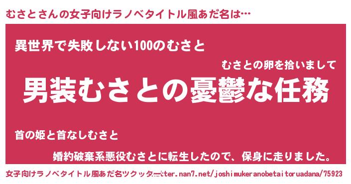 | 男性向けラノベタイトル風あだ名 | 『うちのむさとが世界を掌握している!』 |