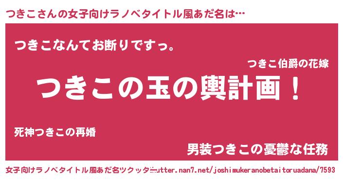 | 男性向けラノベタイトル風あだ名 | 『転生したらつきこだった件』 |