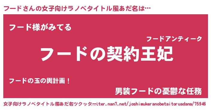 | 胡散臭い通販商品みたいなあだ名 | 『来世でも幸せになれる水素水…その名も「フード」』 |
