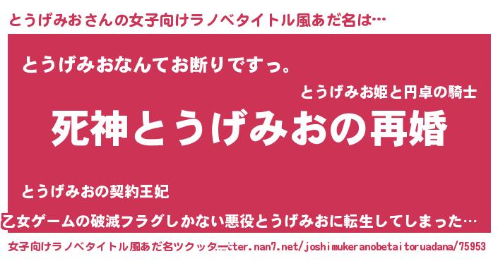 | 男性向けラノベタイトル風あだ名 | 『ノーゲーム・ノートウゲミオ』 |
