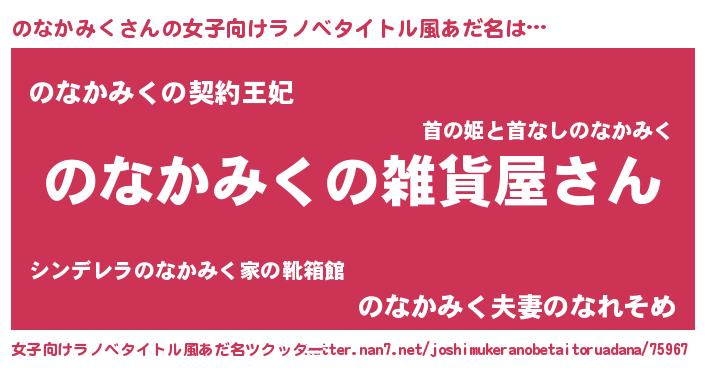 | 男性向けラノベタイトル風あだ名 | 『やはりのなかみくの青春ラブコメはまちがっている 』 |