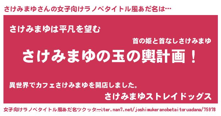 | ヘコむあだ名 | 『さけっぺ』『さけみまゆ(小並感)』 |