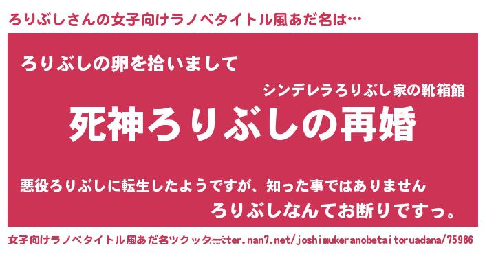 | 男性向けラノベタイトル風あだ名 | 『ノーゲーム・ノーロリブシ』 |