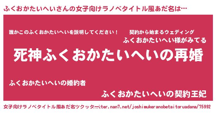 | 男性向けラノベタイトル風あだ名 | 『ノーゲーム・ノーフクオカタイヘイ』 |