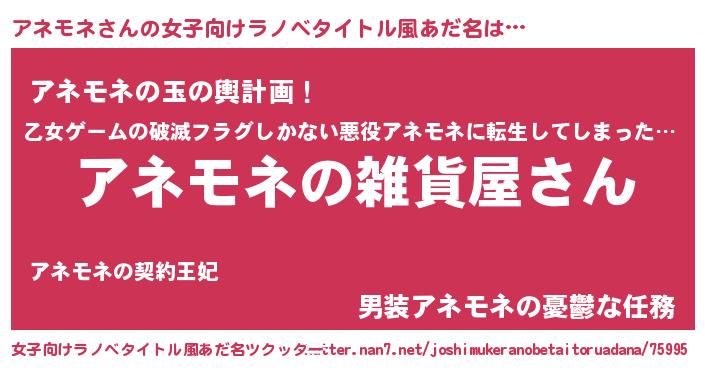 | 男性向けラノベタイトル風あだ名 | 『やはりアネモネの青春ラブコメはまちがっている 』 |