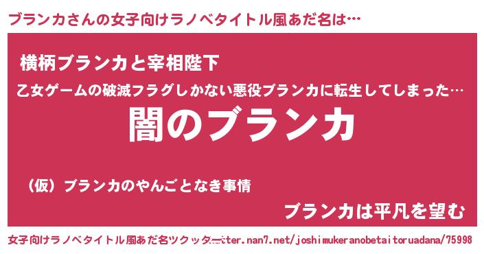 | 男性向けラノベタイトル風あだ名 | 『Re:ブランカから始める異世界生活』 |