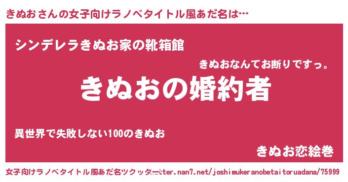 | 胡散臭い通販商品みたいなあだ名 | 『運命の人と巡り会える高級そうな絵画…その名も「きぬお」』 |