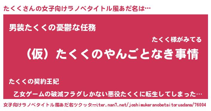 | 男性向けラノベタイトル風あだ名 | 『たくくの憂鬱』 |