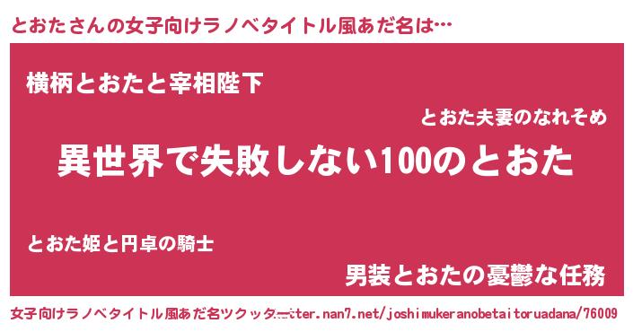 | 男性向けラノベタイトル風あだ名 | 『とおたという概念が存在しない退屈な世界 』 |