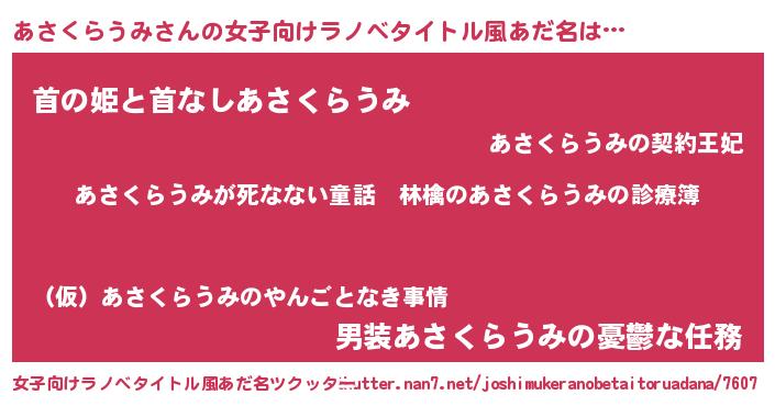 | 意味不明あだ名 | 『住所不定無職あさくらうみ(79歳)』 |