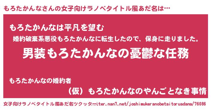 | 男性向けラノベタイトル風あだ名 | 『冴えないもろたかんなの育てかた』 |