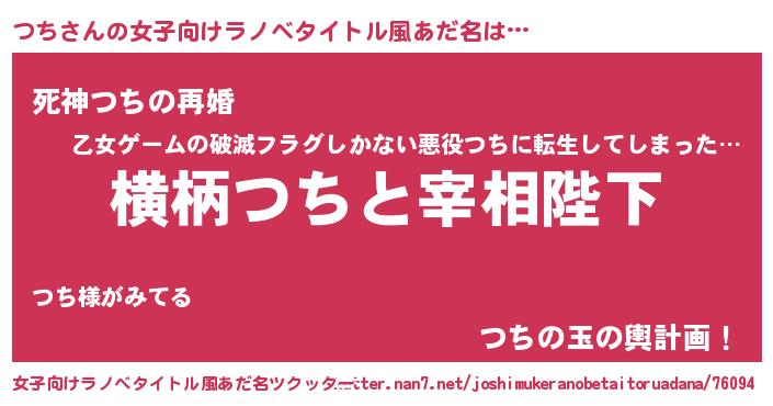 | 男性向けラノベタイトル風あだ名 | 『つちに滅ぼされるだけの簡単なお仕事です』 |