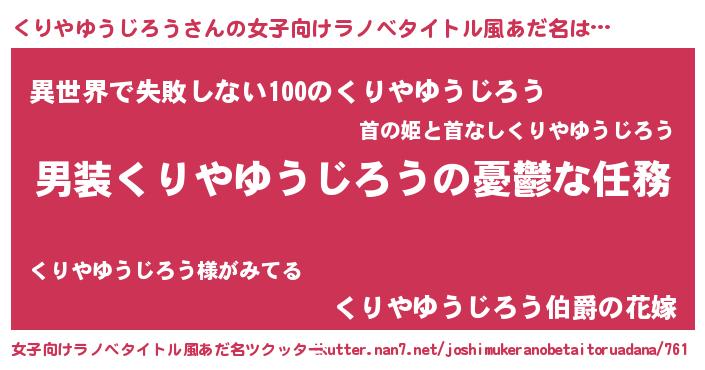 | 意味不明あだ名 | 『永久保存くりやゆうじろう』 |