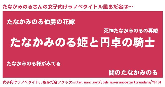 | 男性向けラノベタイトル風あだ名 | 『タナカミノルアートオンライン』 |