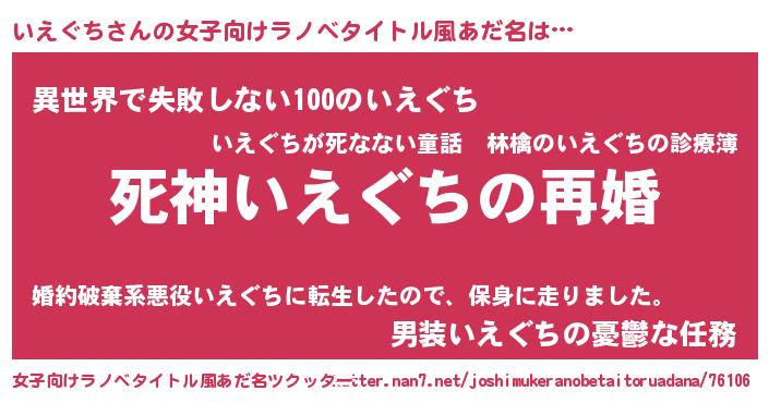 | ヒーロー風カッコイイあだ名 | 『天空の使者いえぐち』『ネオイエグチ』 |