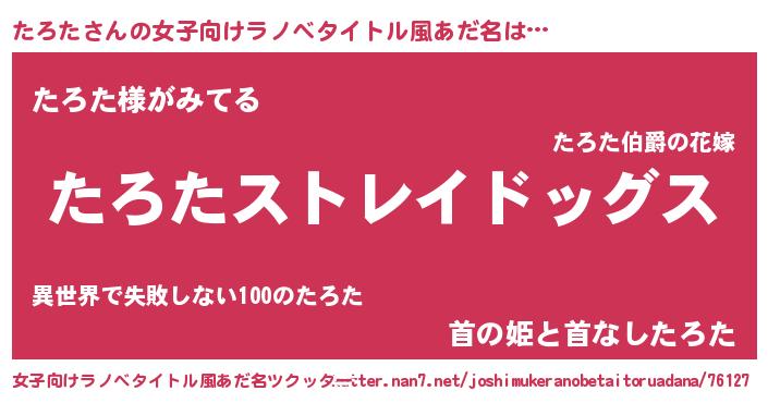 | 肩書あだ名 | 『たろた閣下』『たろたリーダー』 |