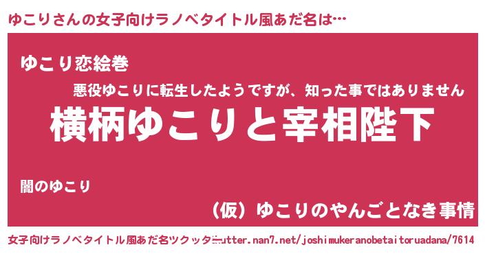 | ヒーロー風カッコイイあだ名 | 『慈愛の使者ゆこり』『スーパーユコリ』 |