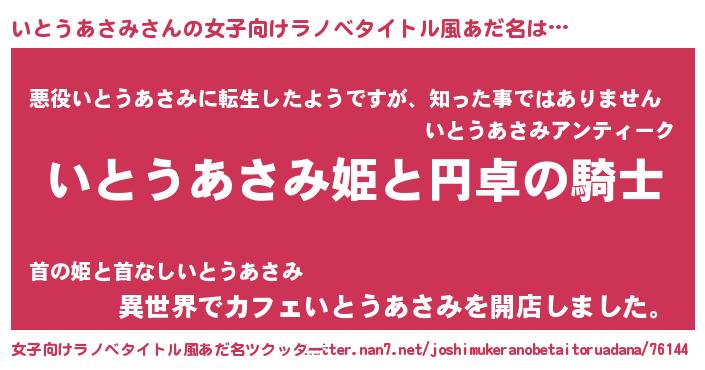 | 男性向けラノベタイトル風あだ名 | 『いとうあさみの憂鬱』 |