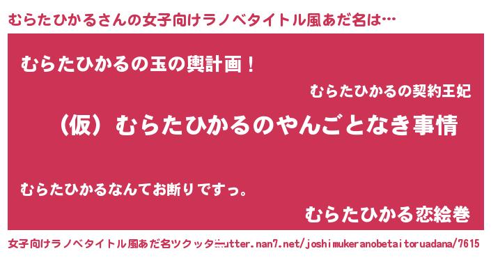 | 男性向けラノベタイトル風あだ名 | 『むらたひかるの憂鬱』 |