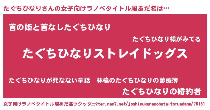 | 意味不明あだ名 | 『自称たぐちひなり』 |
