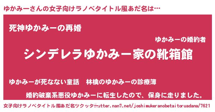 | 男性向けラノベタイトル風あだ名 | 『緋弾のユカミー』『ユカミースレイヤー』 |