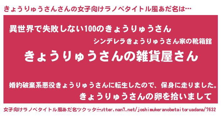 | 男性向けラノベタイトル風あだ名 | 『やはりきょうりゅうさんの青春ラブコメはまちがっている 』 |