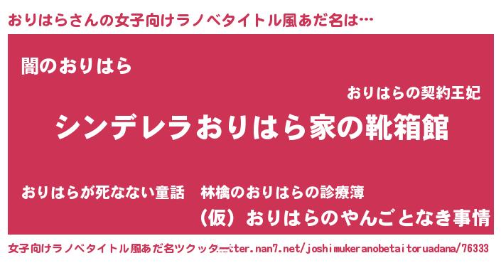 | 男性向けラノベタイトル風あだ名 | 『緋弾のオリハラ』『おりはらの憂鬱』 |
