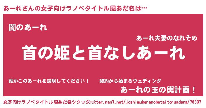 | 意味不明あだ名 | 『自称あーれ』『もやし科あーれ属』 |