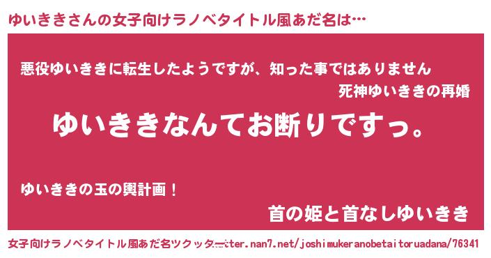 | 意味不明あだ名 | 『自称ゆいきき』『もやし科ゆいきき属』 |