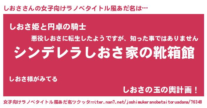| 胡散臭い通販商品みたいなあだ名 | 『必ず成功する霊験あらたかなお札…その名も「しおさ」』 |