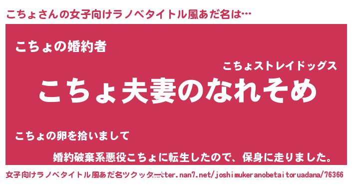 | 男性向けラノベタイトル風あだ名 | 『おまえをオタクにしてやるから、俺をこちょにしてくれ! 』 |