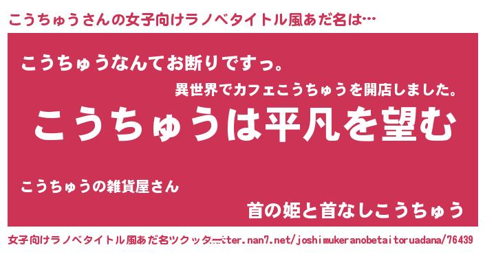 | ヘコむあだ名 | 『こうっ子』『こうちゅう(笑)』 |