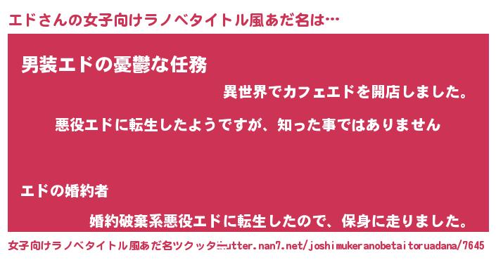 | 男性向けラノベタイトル風あだ名 | 『この素晴らしい世界にエドを!』 |