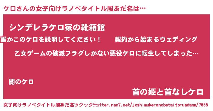 | 胡散臭い通販商品みたいなあだ名 | 『世界中を虜にした100年もののヴィンテージワイン…その名も「ケロ」』 |