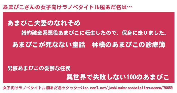 | 意味不明あだ名 | 『住所不定無職あまぴこ(95歳)』 |