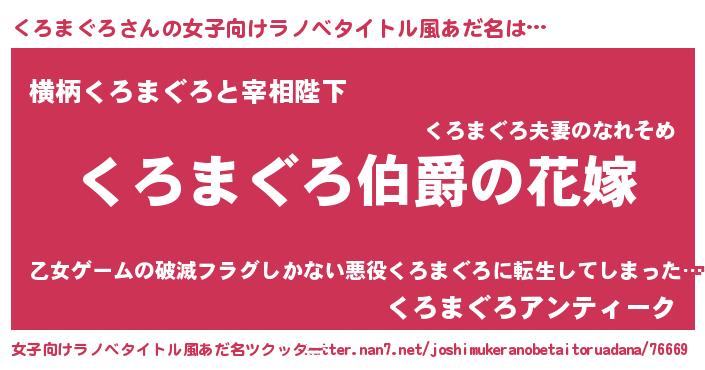 | 胡散臭い通販商品みたいなあだ名 | 『世界が平和になる高級そうな壺…その名も「くろまぐろ」』 |