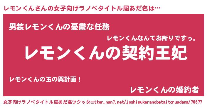 男性向けラノベタイトル風あだ名 | 『レモンくんという概念が存在しない退屈な世界 』 |