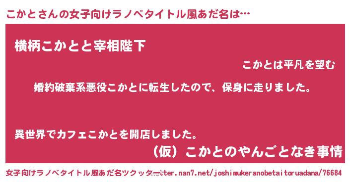 | 料理風あだ名 | 『こかとごはん』『こかとの豆乳スープ』 |